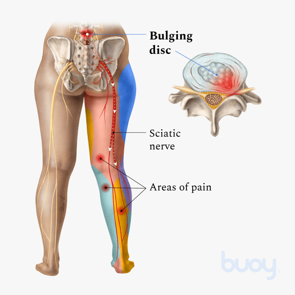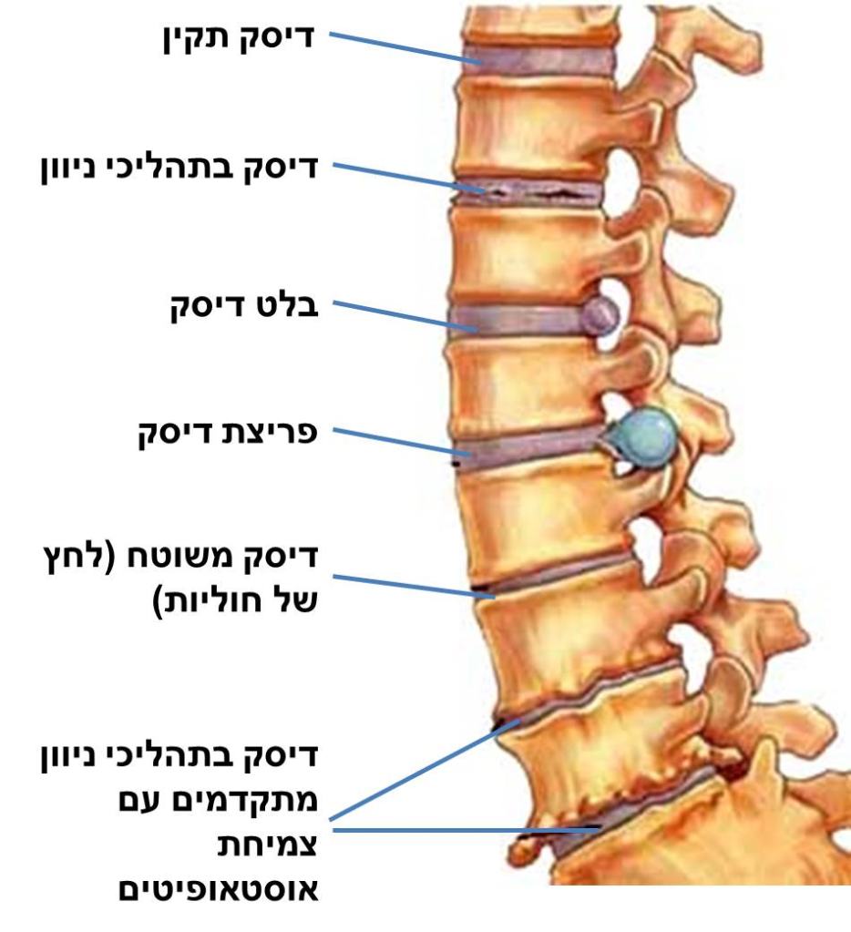 1. כאשר דיסק בין-חולייתי בולט מעט החוצה ולוחץ על שורש עצב, נוצר מגע מתמשך בין רקמות שלא אמורות להתחכך.